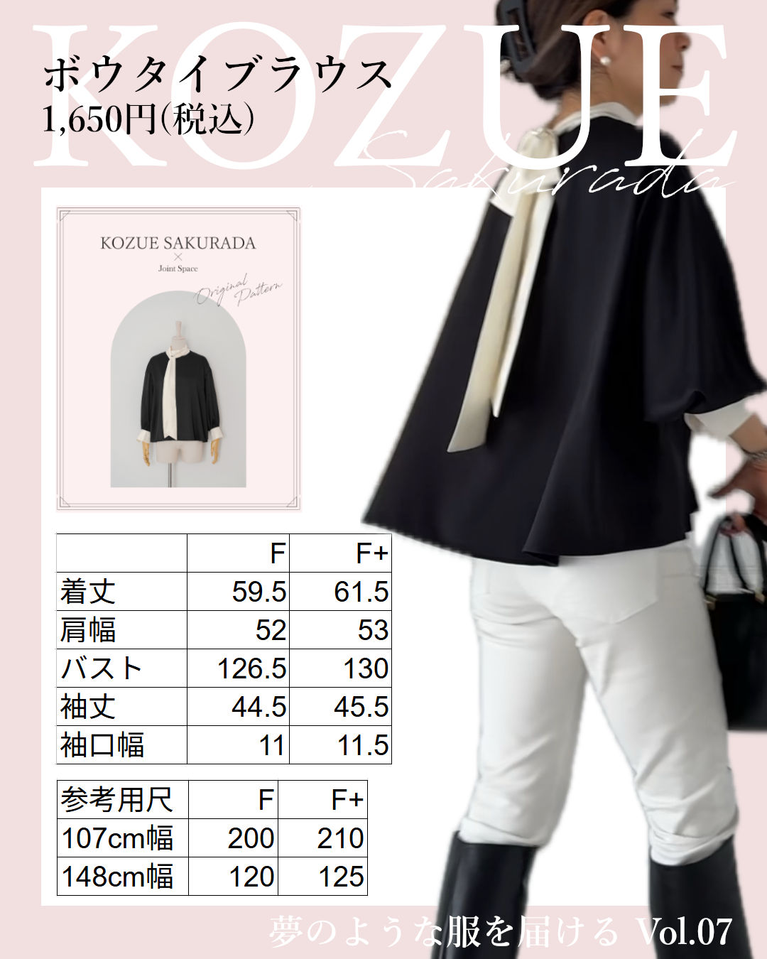 型紙 ボウタイ ブラウス Joint Space×kozuesakurada
