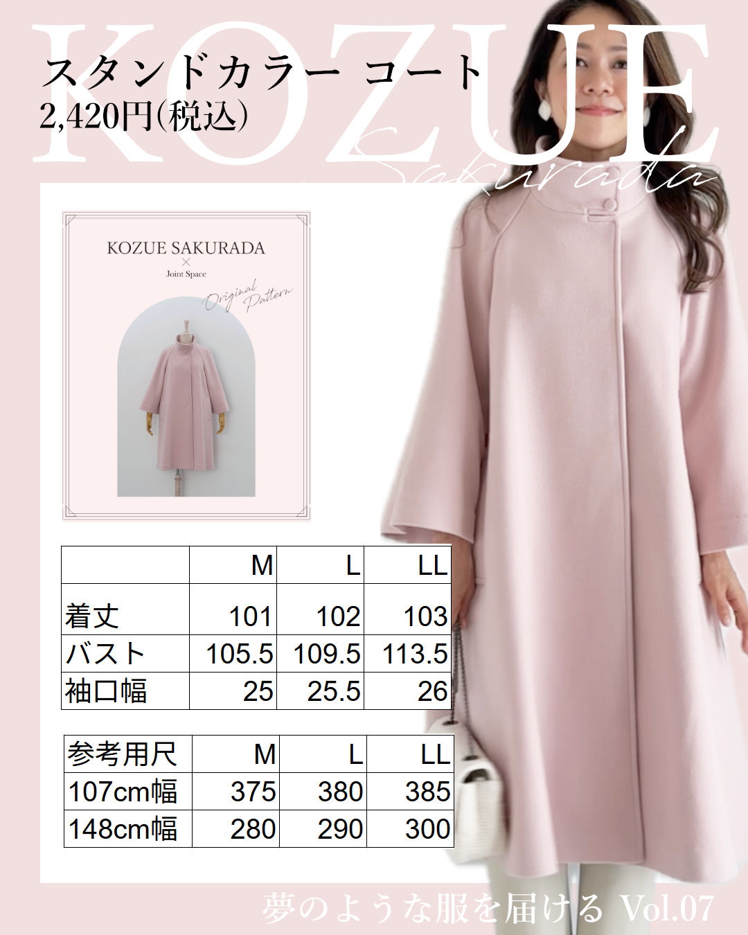 型紙 スタンドカラー ベルスリーブ コート Joint Space×kozuesakurada